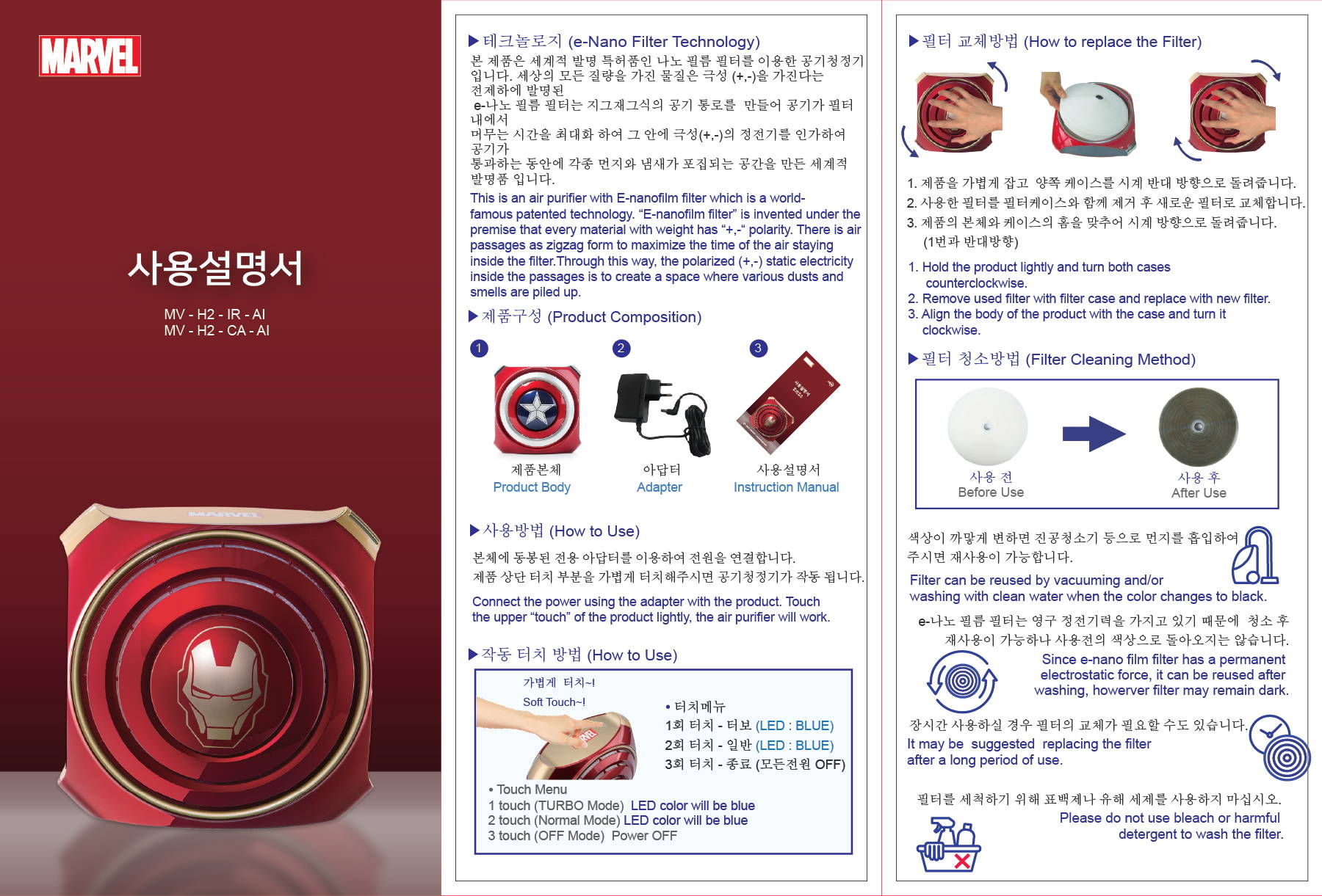 The Marvel air purifiers' e-Nano filter can do the same job as regular air purifiers' multiple air filters!