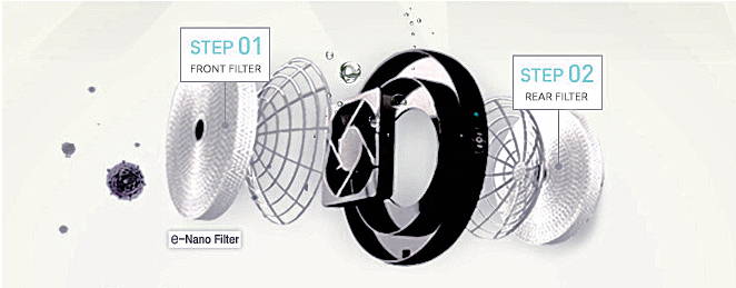 At its core are two patented e-Nano filters that offer two levels of air filtration powered by a strong and quiet fan that offer powerful and clean air purification.